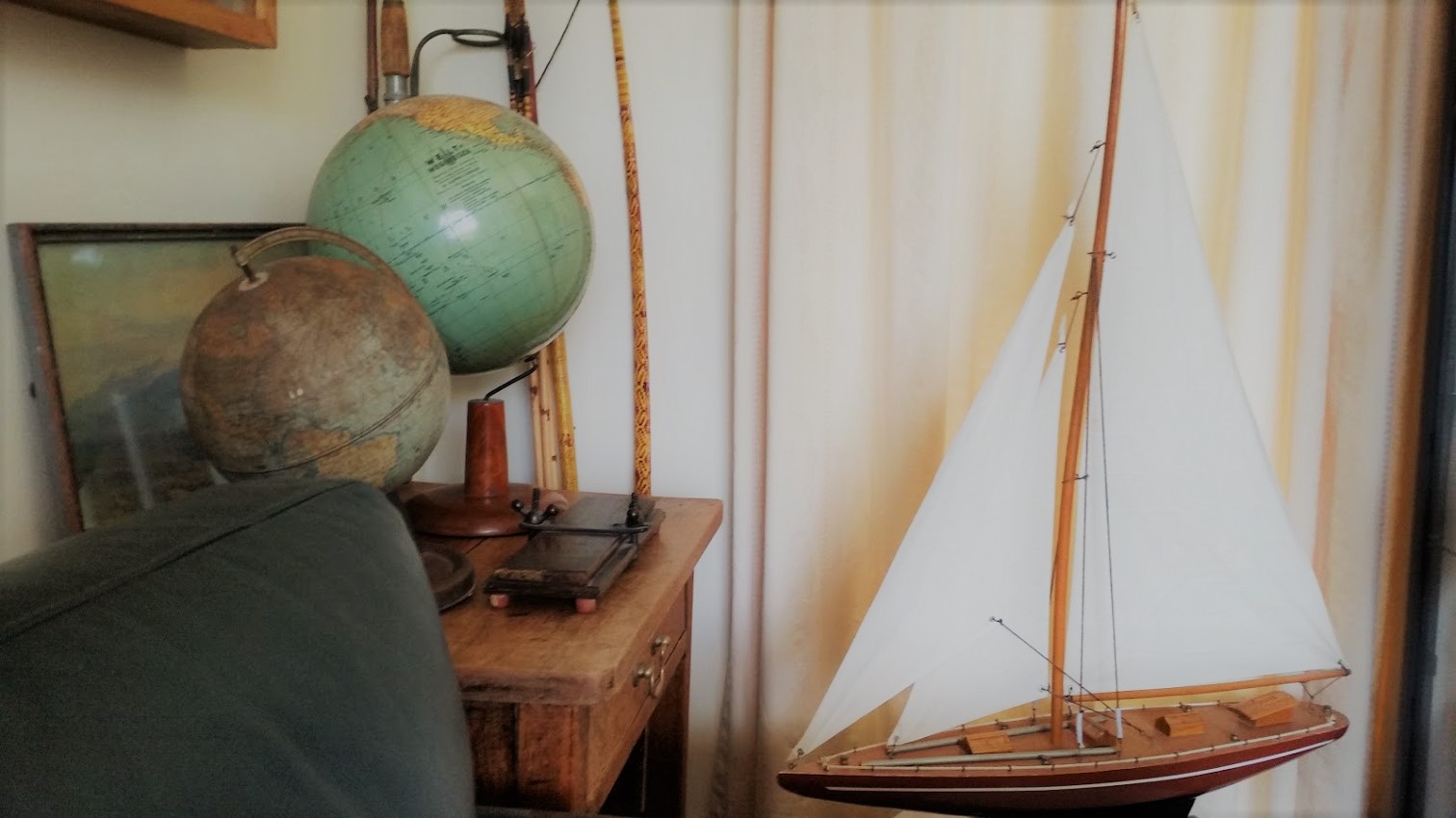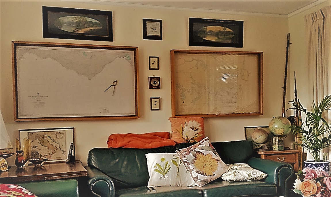 Navigation Charts purchased framed from a seller on eBay, the framed pictures were from a second hand hop, the globes purchased from the United States on Etsy.
